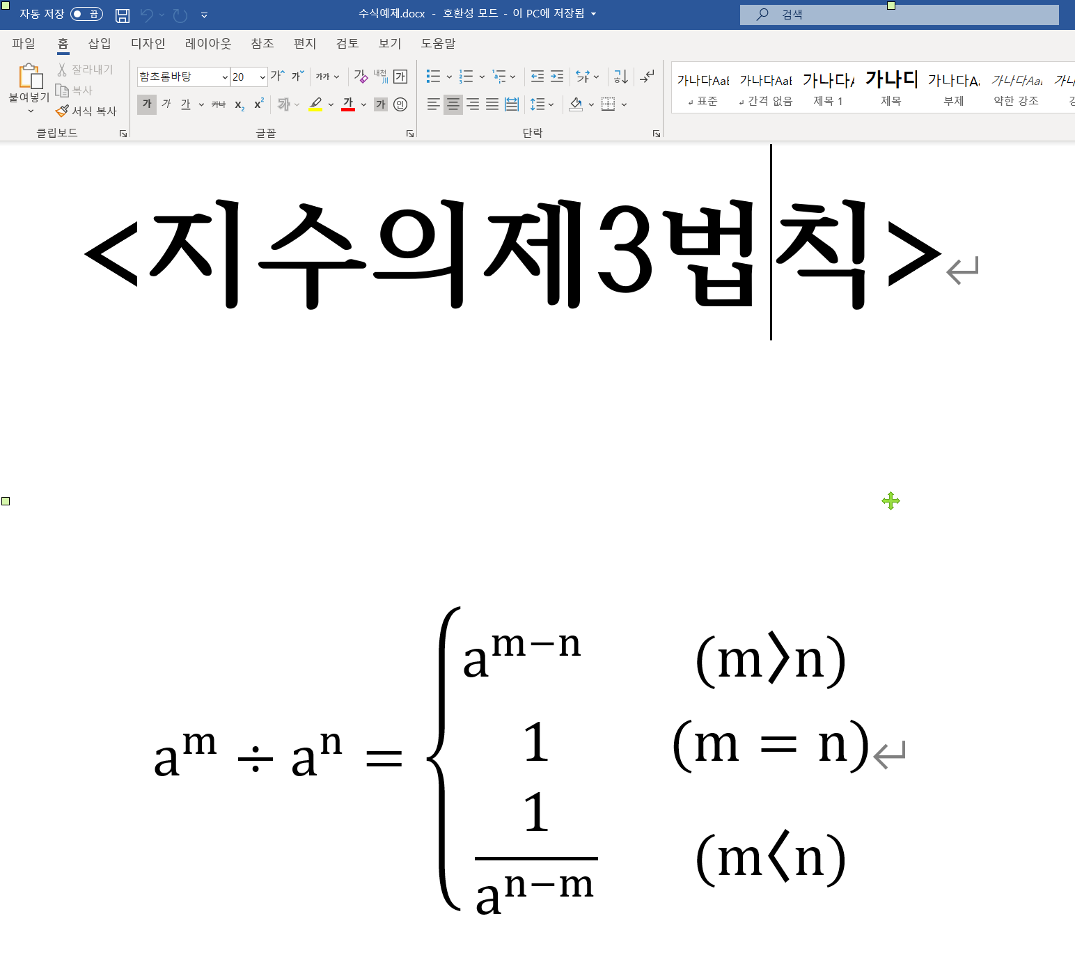 filename이 "수식예제.hwp"이고(이전 포스팅의 코드 참조),