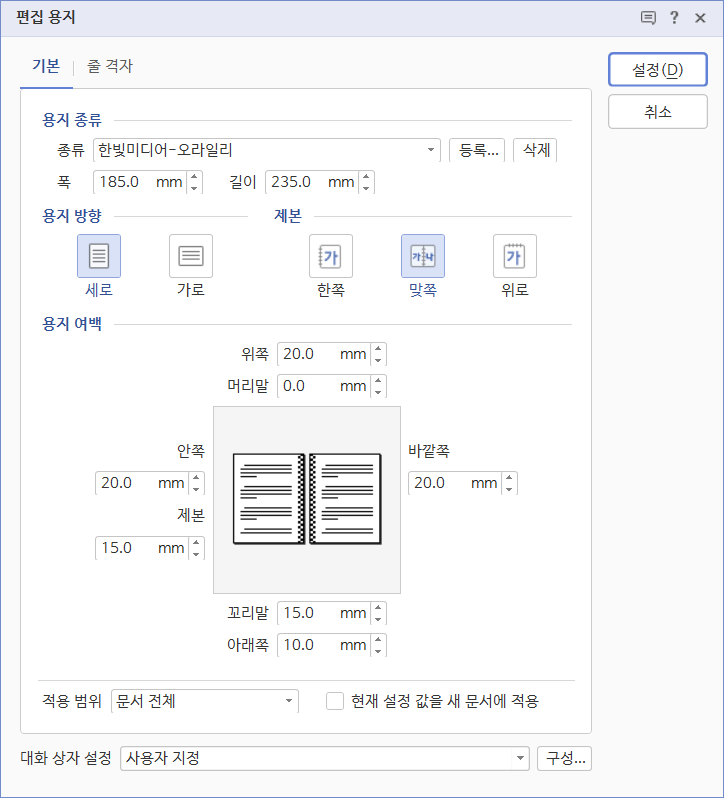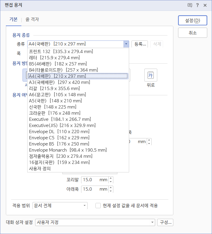 용지 사이즈를 결정하셨다면? 이제 여백을 설정합시다.
