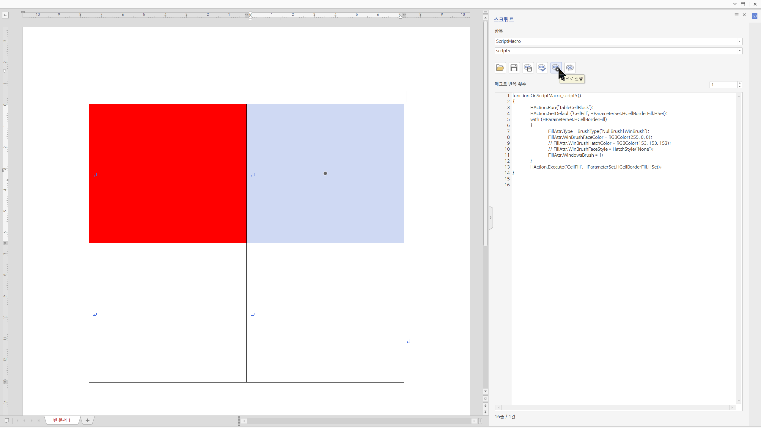 필수 파라미터를 빼먹는 경우가 있기 때문이다. 한/글 스크립트는 오류메시지가 친절하지 않다.