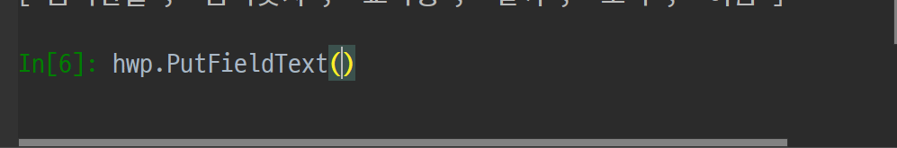 기억나지 않는다면, hwp.GetFieldList() 메서드를 실행해보자.