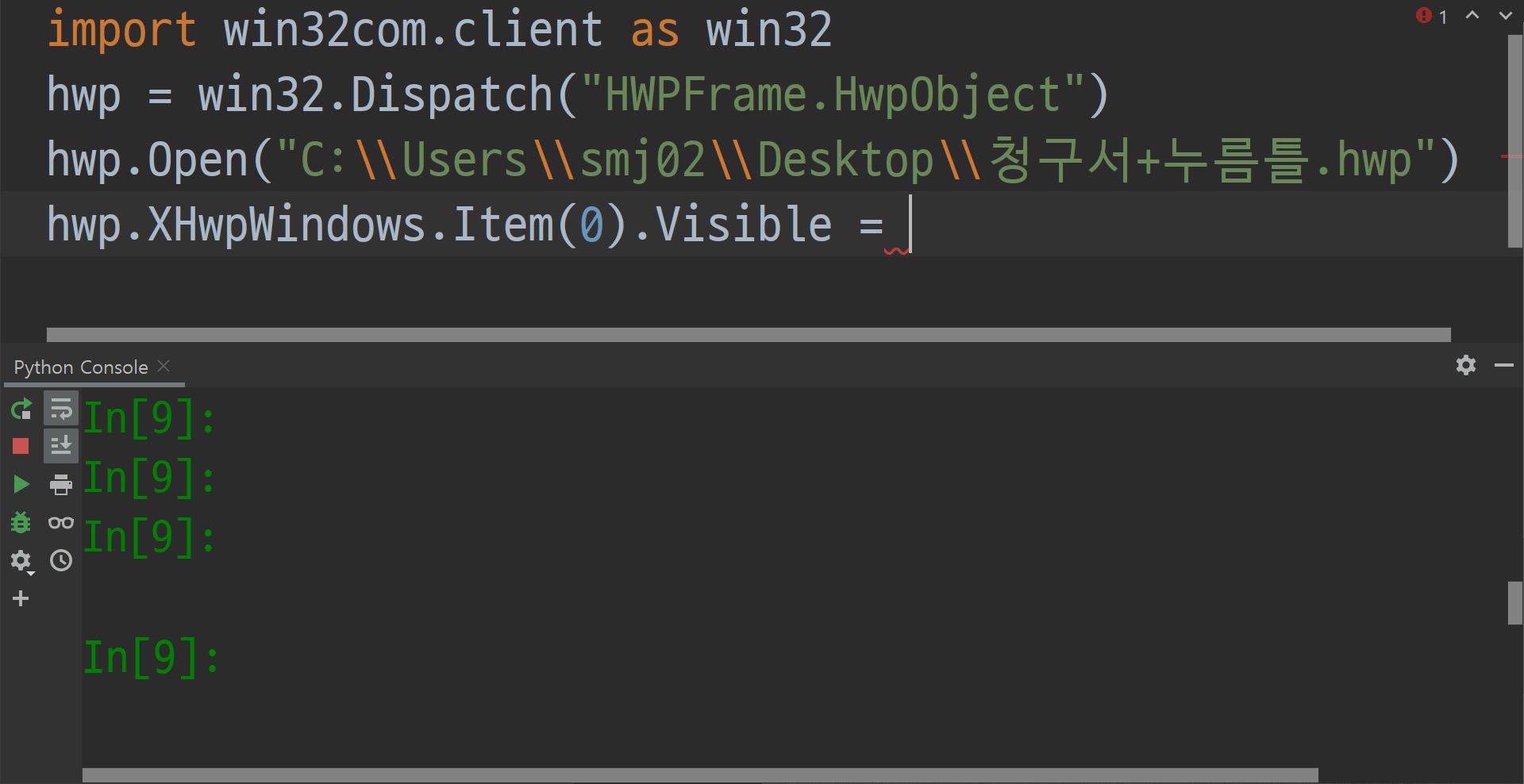 1. 파이썬을 통해 한/글을 실행해보자.