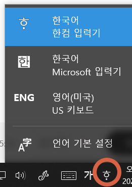 해결방법도 간단하다. 입력기가 한컴(ㅎ)으로 선택되어 있다면,