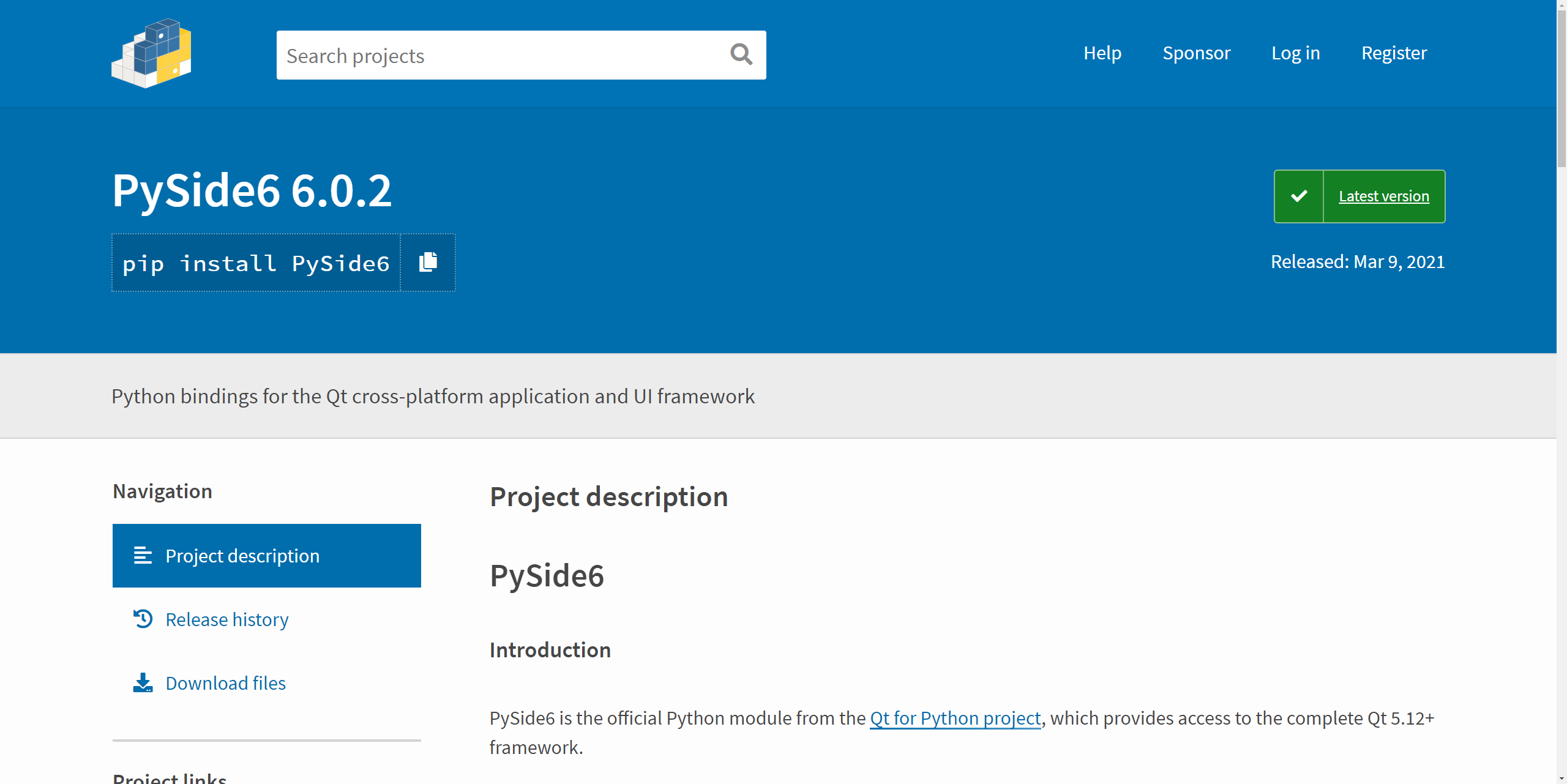 드디어 PyQt6 배포와 함께 Qt for Python, 즉 PySide2가 PySide6라는 이름으로 배포되었습니다(재미있게도 PyQt6가 올 1월 배포되었는데, PySide6는 작년 12월, 조금 더 일찍 배포가 시작되었습니다). Qt의 공식 파이썬 바인딩 지원버전인 Qt for Python(PySide)의 세 번째 메이저버전이 PySide3가 아니고 PySide6인 점에 의아하다는 분들도 계실 것 같은데요. Qt와 넘버링을 같이 가져가겠다는 의지로 보입니다. 공식 PyPI 홈페이지는 아래와 같습니다.