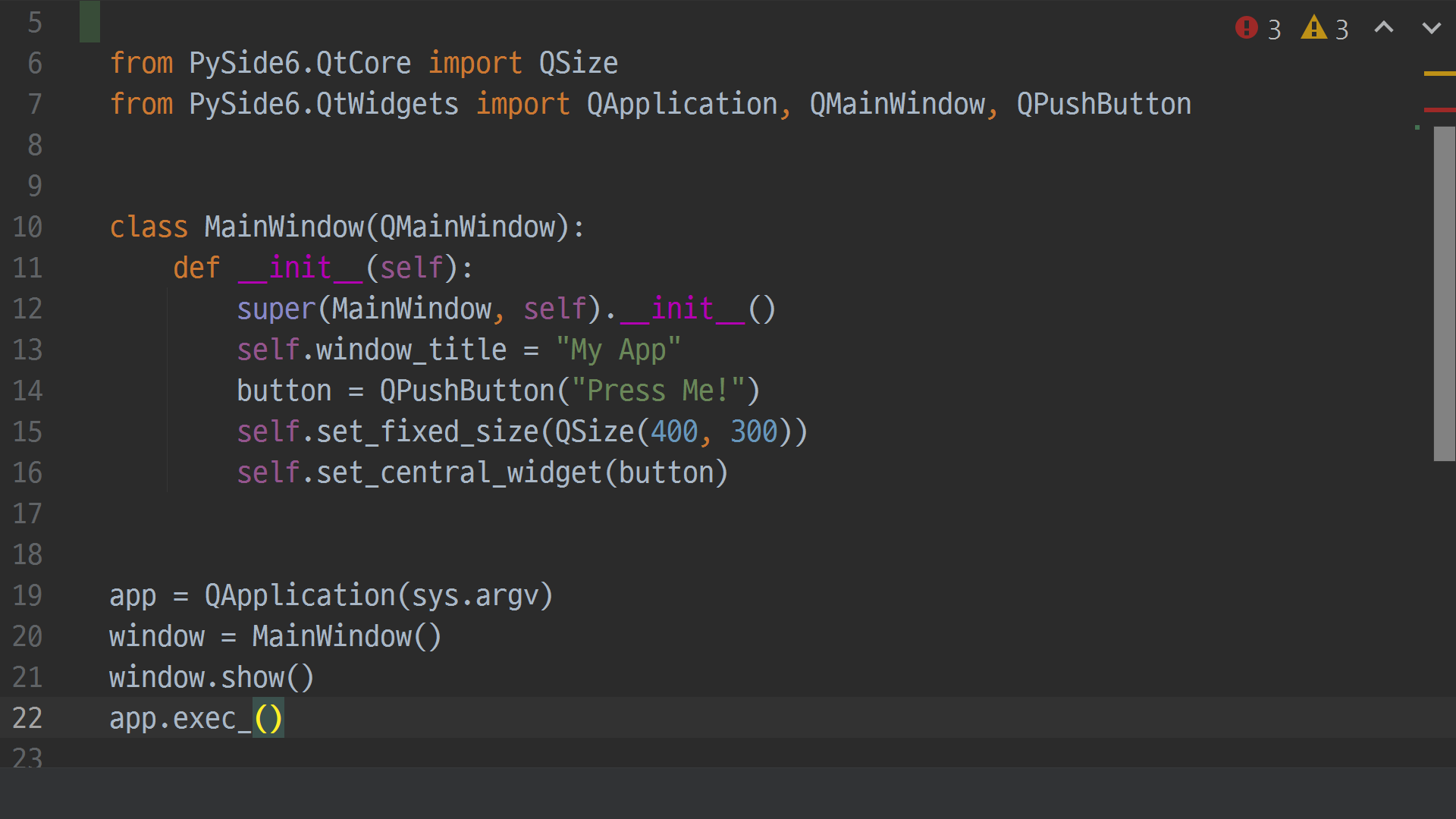 파이썬을 공부하다 보면 이런저런 책에서 이야기하는 "파이써닉"이라는 단어가 종종 튀어나옵니다. Qt 포스팅 하다가 무슨 파이써닉을 꺼내냐는 분도 계실텐데, 사실 제가 Qt를 알려드리는 게 아니고, PySide, 특히 PySide6를 알려드리는 튜토리얼이기 때문에 이 말씀을 먼저 드리는 게 좋겠다는 생각이 듭니다. 사실 파이써닉은 대부분의 파이썬 개발자들 사이에 통하는 일종의 "파이썬다움"인 것 같아요. 파이써닉함이 지켜지지 않은 코드를 읽다 보면 어떤 부분에서는 불쾌해지기도 하죠. (오타쿠인가 싶겠지만 아주 사소한 코드나 변수 가지고도 정말 그렇게 되더라고요..)