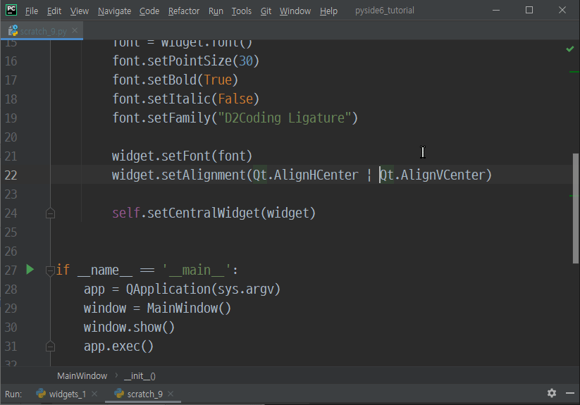 예상보다 포스팅 분량이 길어질 것 같아서, 한 템포 쉬고 다음 포스팅에서 이어서 작성하겠습니다. Qt플래그와 폰트, 그리고 이미지를 QLabel로 붙이는 QLabel.setPixmap 메서드 등에 대해서 설명드리겠습니다.