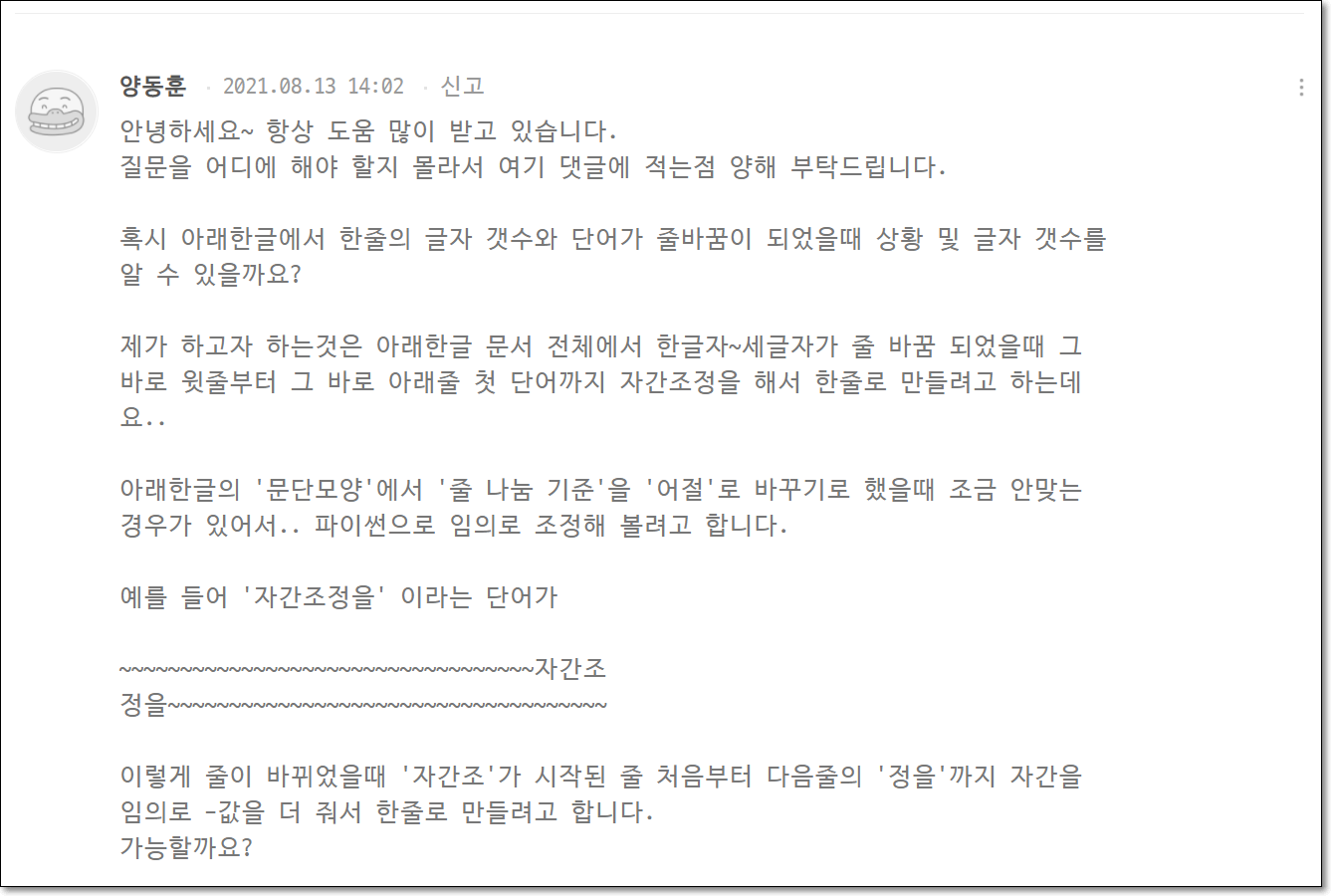 한글 = 한글시작(visible=True, open_file=r"C:\Users\smj02\PycharmProjects\hwptest\20210814_자간자동조정\자간줄이기예문.hwp")
