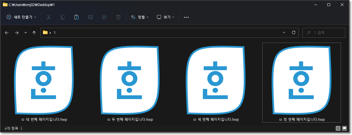 그 후에 파일명을 변경하는 코드를 따로 만든다. (1.hwp부터 하나씩 열어서 "첫 번째 페이지입니다.hwp" 방식으로)