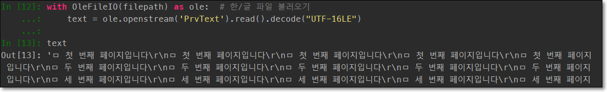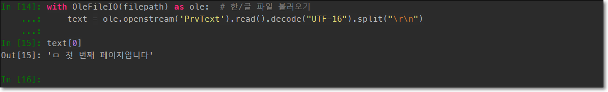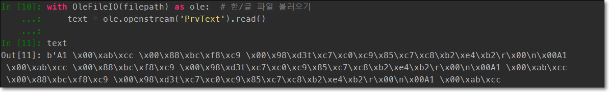 with OleFileIO(filepath) as ole: # 한/글 파일 불러오기