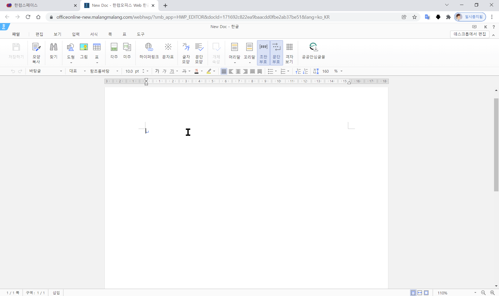 한컴에서 제공해주는 무료 hwp 에디터인 한컴스페이스는