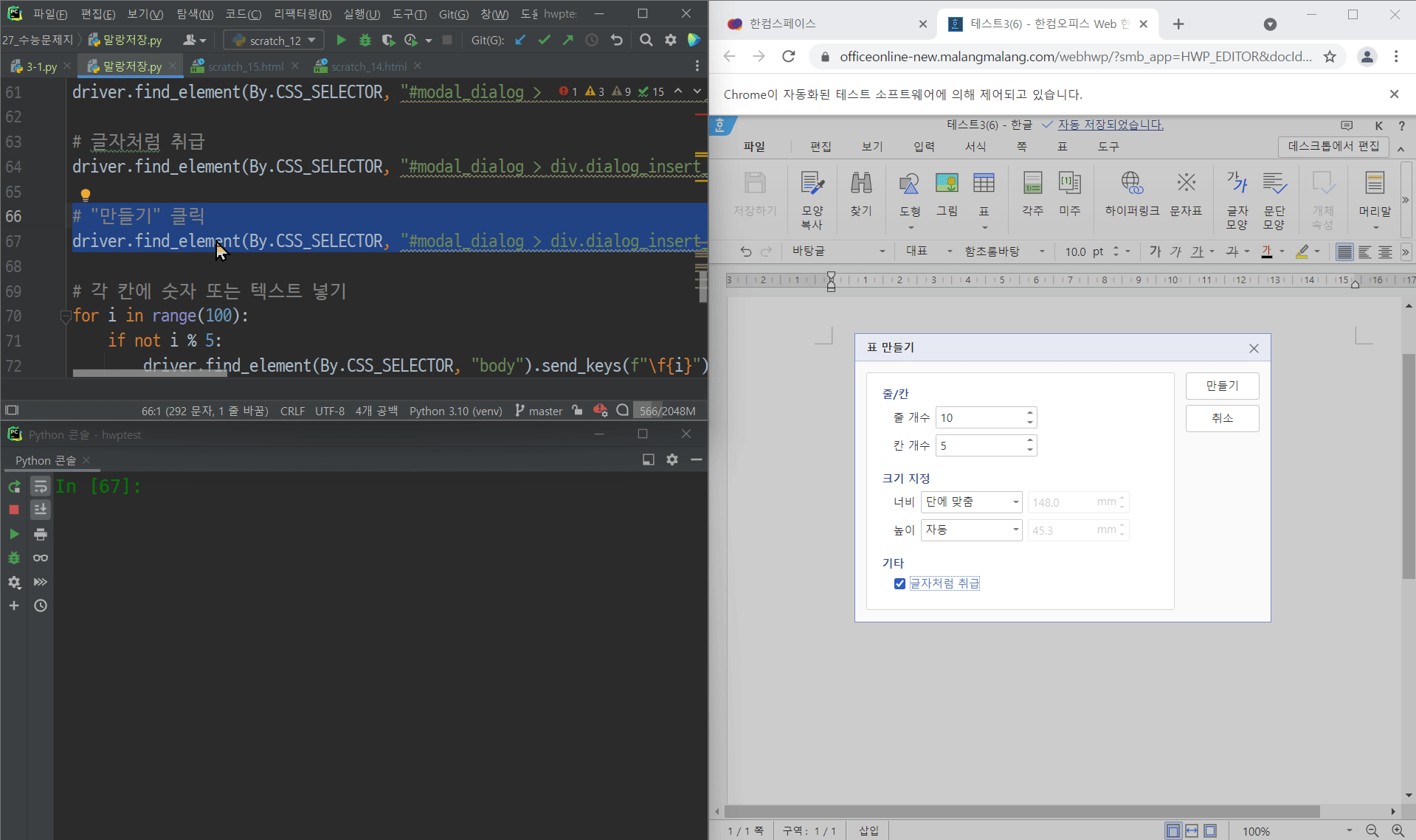 개인적으로, 파이썬으로 아래아한글 자동화 코드를 짜는 것과는