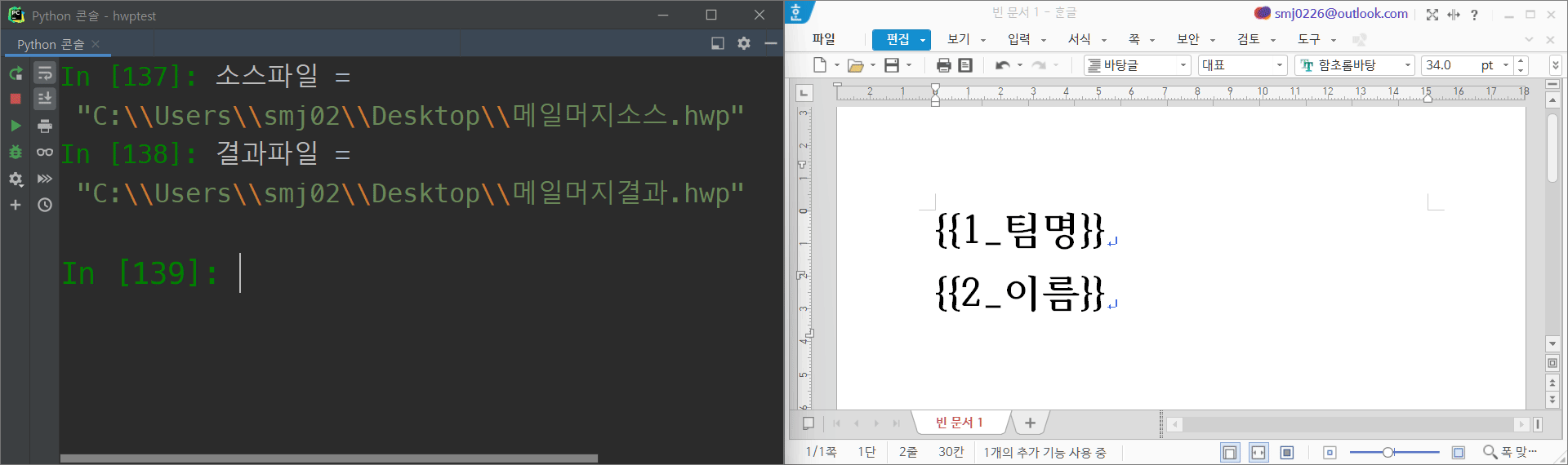 메일머지 기능 자체를 파이썬 코드로 자동화