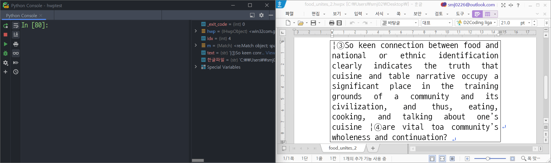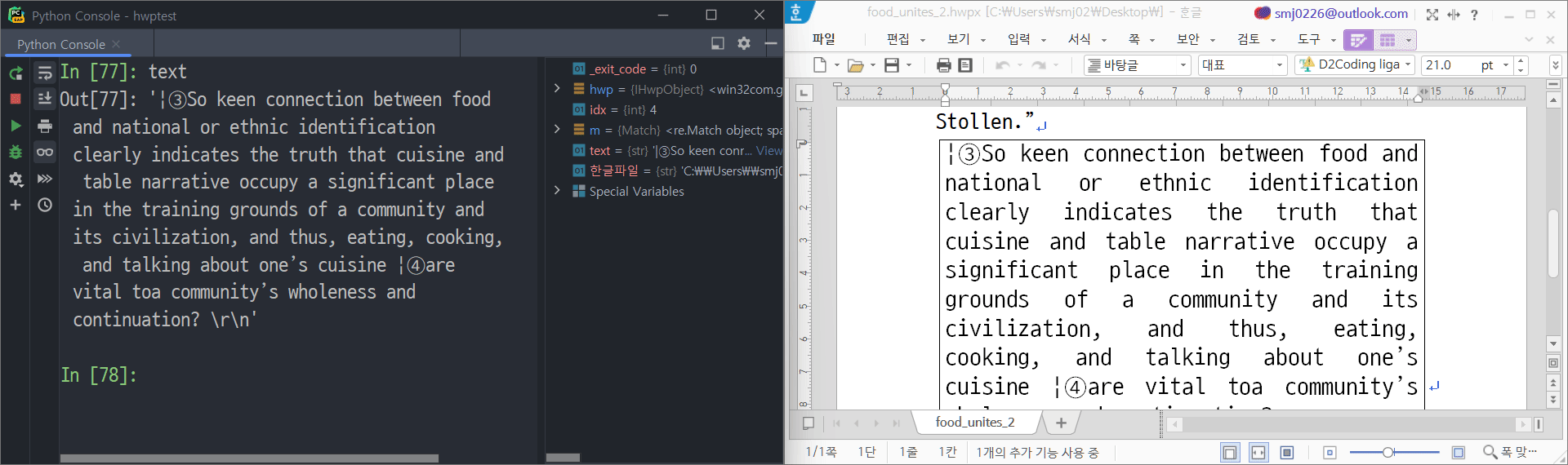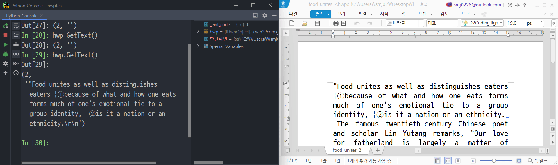 2022.02.04 - [업무자동화/파이썬-아래아한글 자동화 기초] - GetText, 한/글 자동화 고급과정의 첫걸음①