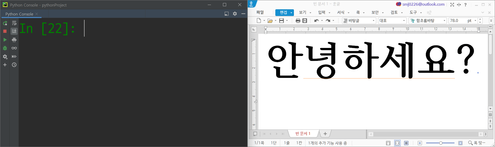 hwp = win32.gencache.EnsureDispatch("hwpframe.hwpobject") # 한/글 열기