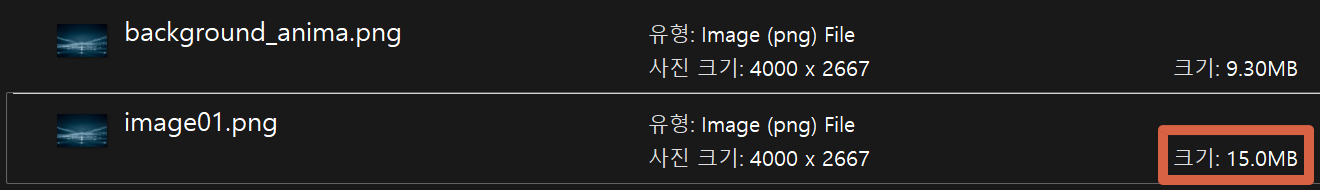 해상도는 동일한테 용량만 괜히 7배로 커지는 마법(==버그)!