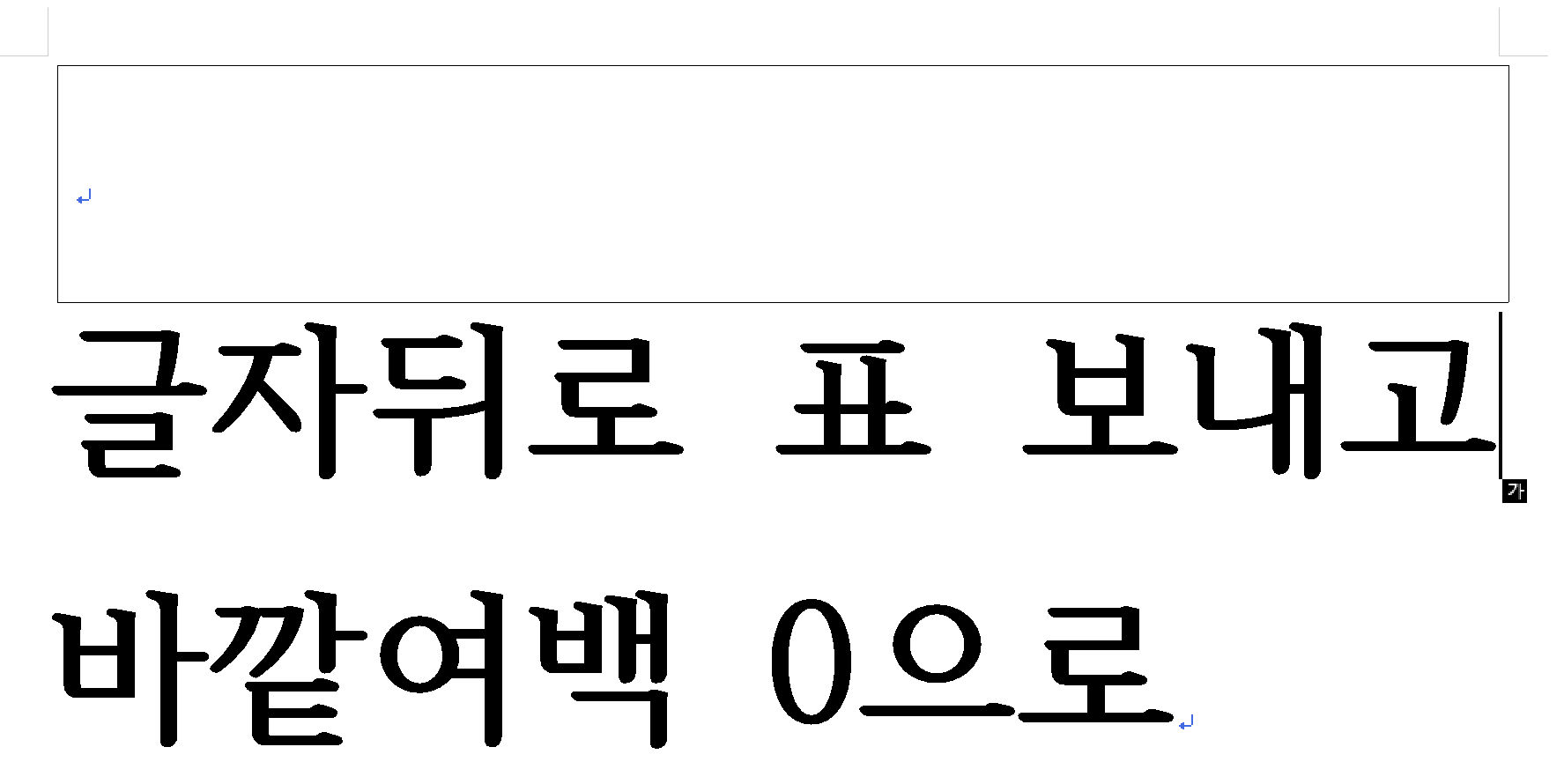 다소 미묘하지만 아래 예시처럼, 표의 바깥여백을 0으로 해줘야 글자가 표 밖으로 튀어나오지 않네요.