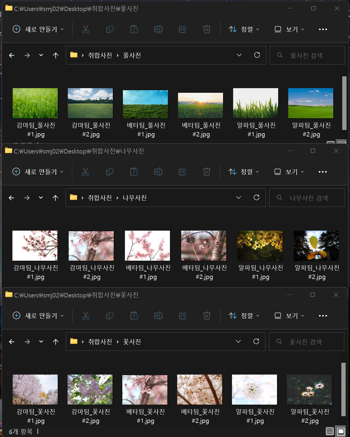 우선 "취합사진"이라는 하위폴더 안에 각각의 제목에 해당하는 폴더를 만들고