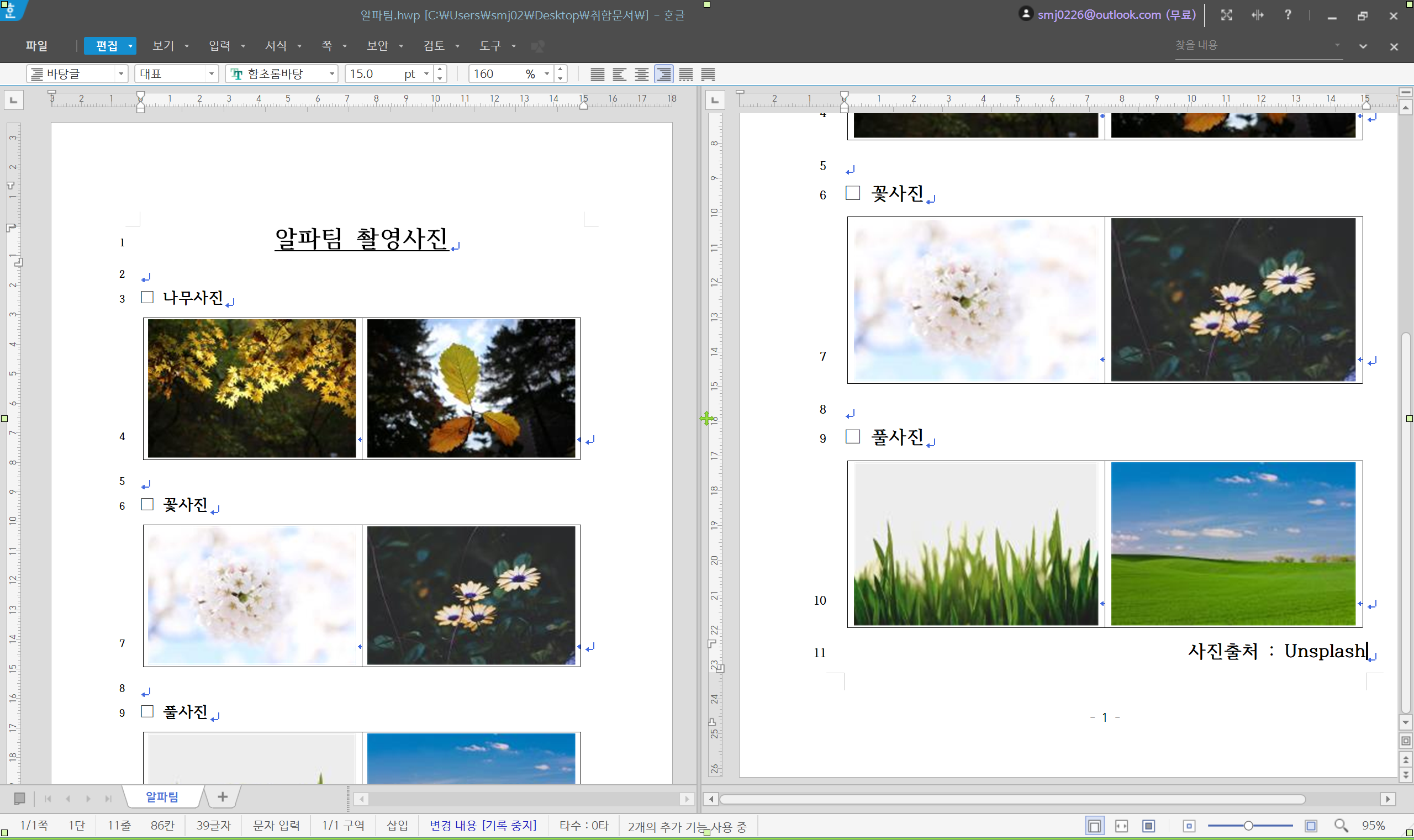 기본적으로 한/글 프로그램은 찾기/찾아바꾸기 기능이 잘 구현되어 있습니다.