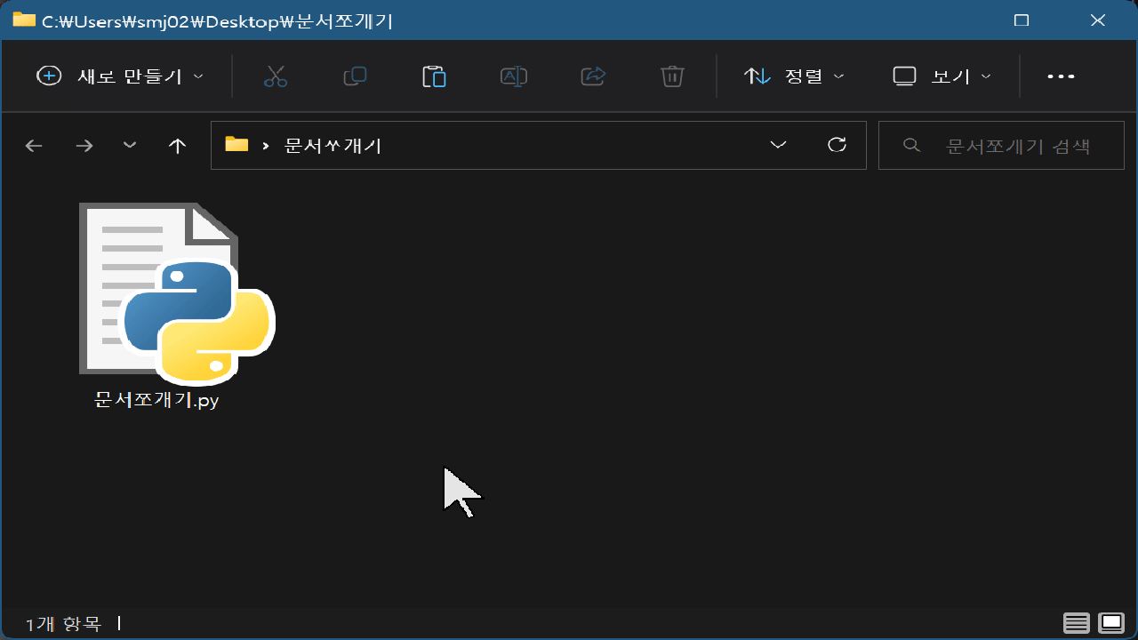 파일탐색기로 파이썬 코드가 있는 폴더에 들어가서 주소창에다가 아래와 같이 입력합니다. (#주석은 빼고)