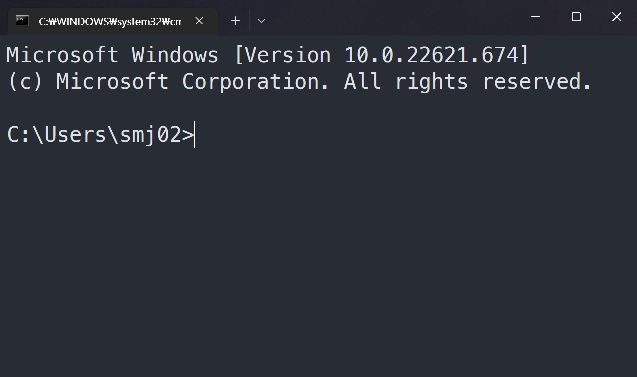 이 화면이 "커맨드 프롬프트"입니다. "터미널"이라고도 부르기도 하고요.