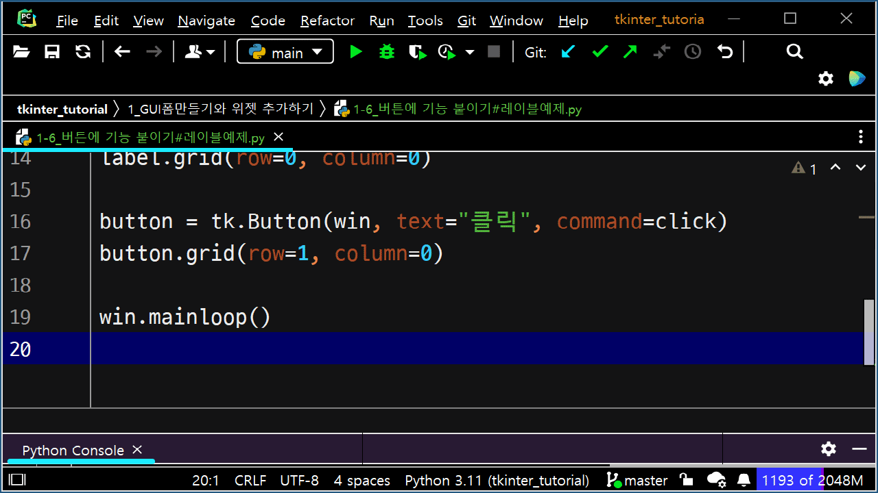 2022.11.15 - [기타/tkinter 한꼬집씩만 따라해보기] - 4. 버튼 추가하기