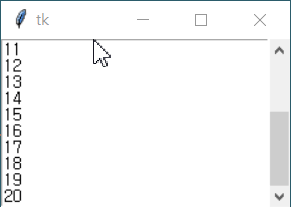 한 가지 재미있는 점은, tkinter에서 Scrollbar라는 위젯도 별도로 제공하고 있다는 사실인데요.