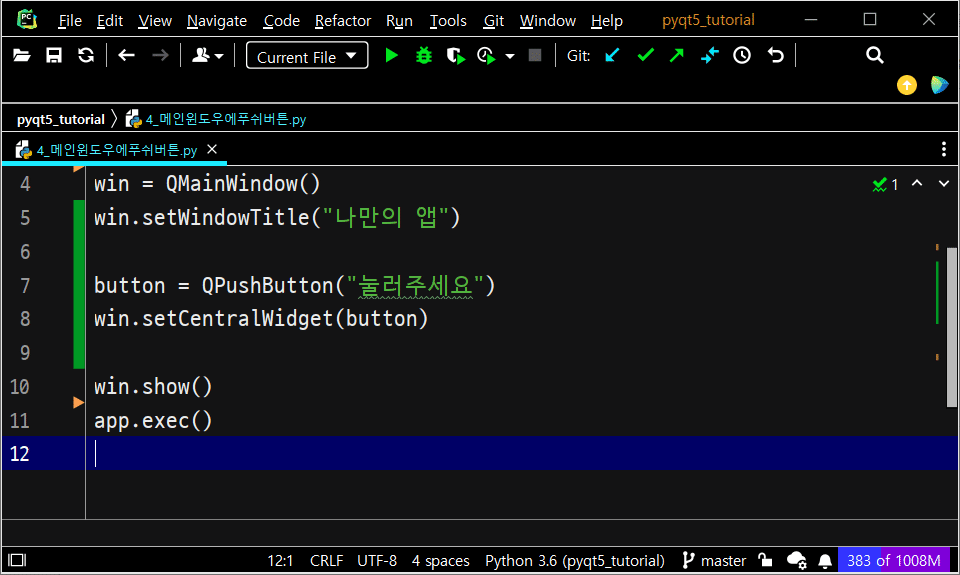 'GUI 튜토리얼 > PyQt5 한꼬집씩만 따라해보기' 카테고리의 다른 글