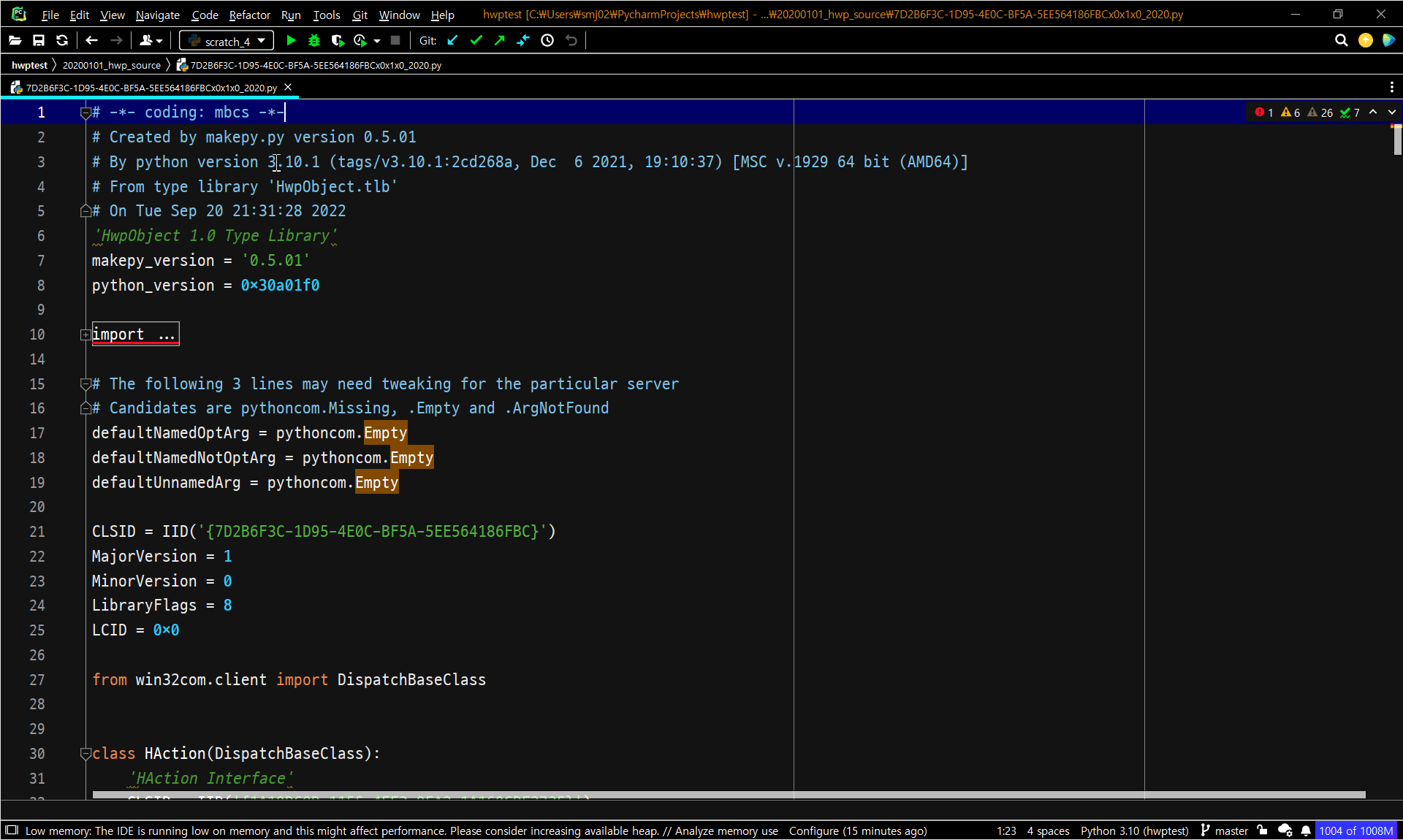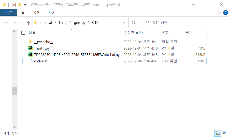 하여튼 위 방법으로 한/글의 타입라이브러리를 파이썬파일로 불러올 수 있고,