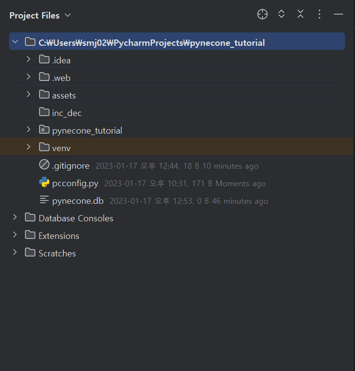 다음 포스팅은 파인콘 프로젝트를 생성할 때 만들어지는 폴더와 파일에 대한 간략한 소개를 드리고