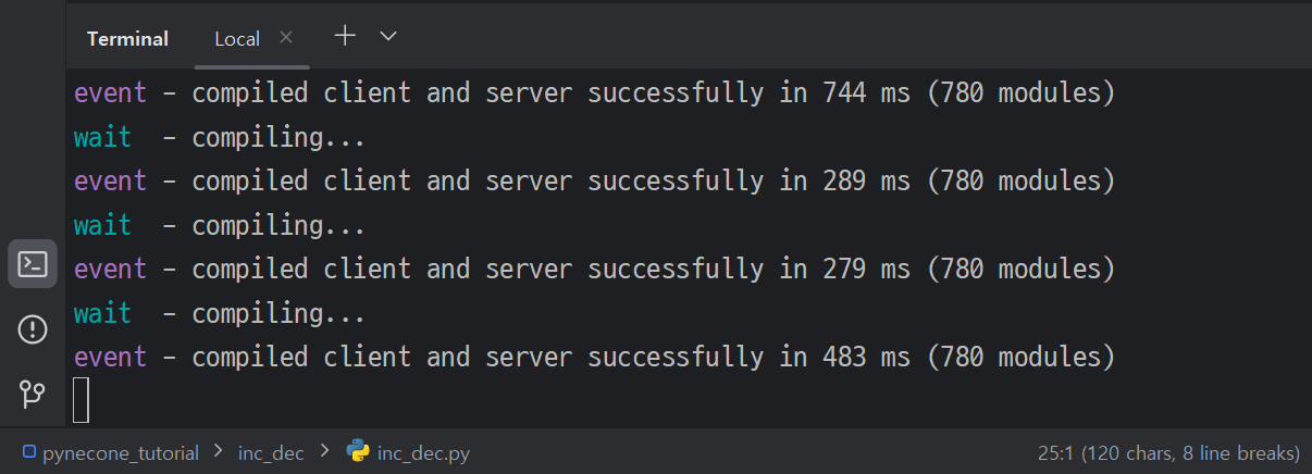 이제 inc_dec/inc_dec.py 파일을 열고 코드를 작성해봅시다.