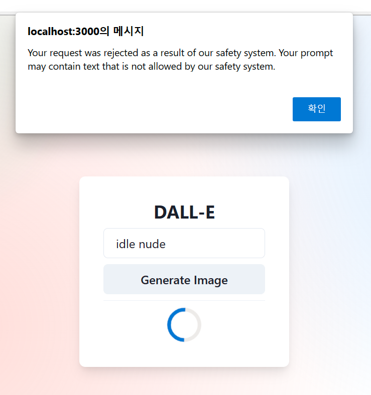 그래서 openai API에서 제공하는 오류메시지를 브라우저 경고창으로 보여주려고 해요.