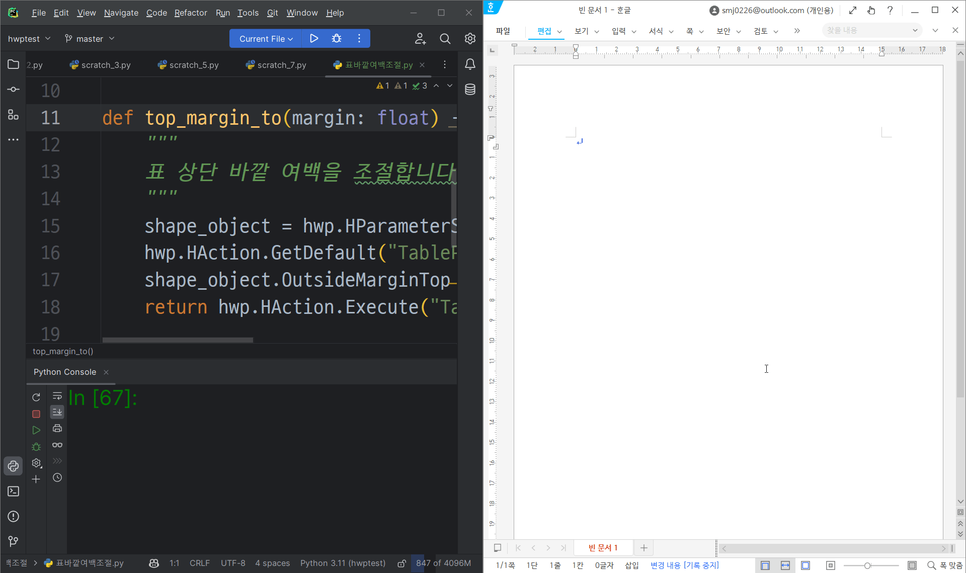'아래아한글 자동화 > python+hwp 중급' 카테고리의 다른 글