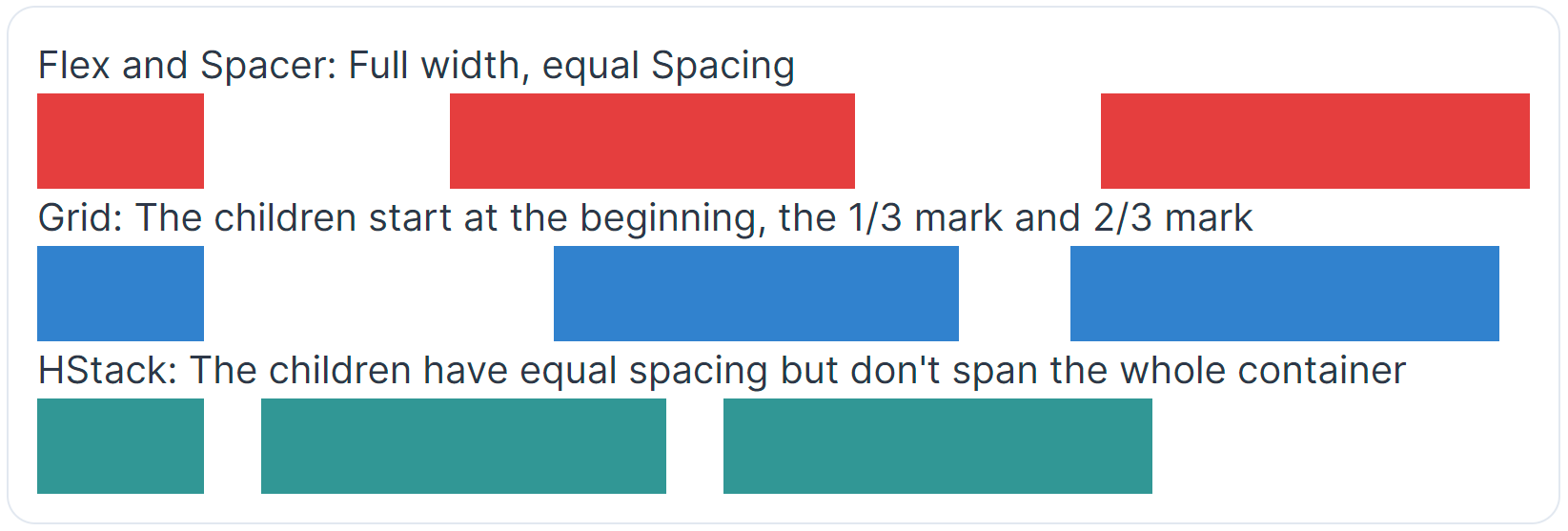 (3) rx.stack은 rx.grid와 달리 컴포넌트 사이의 간격이 동일합니다.