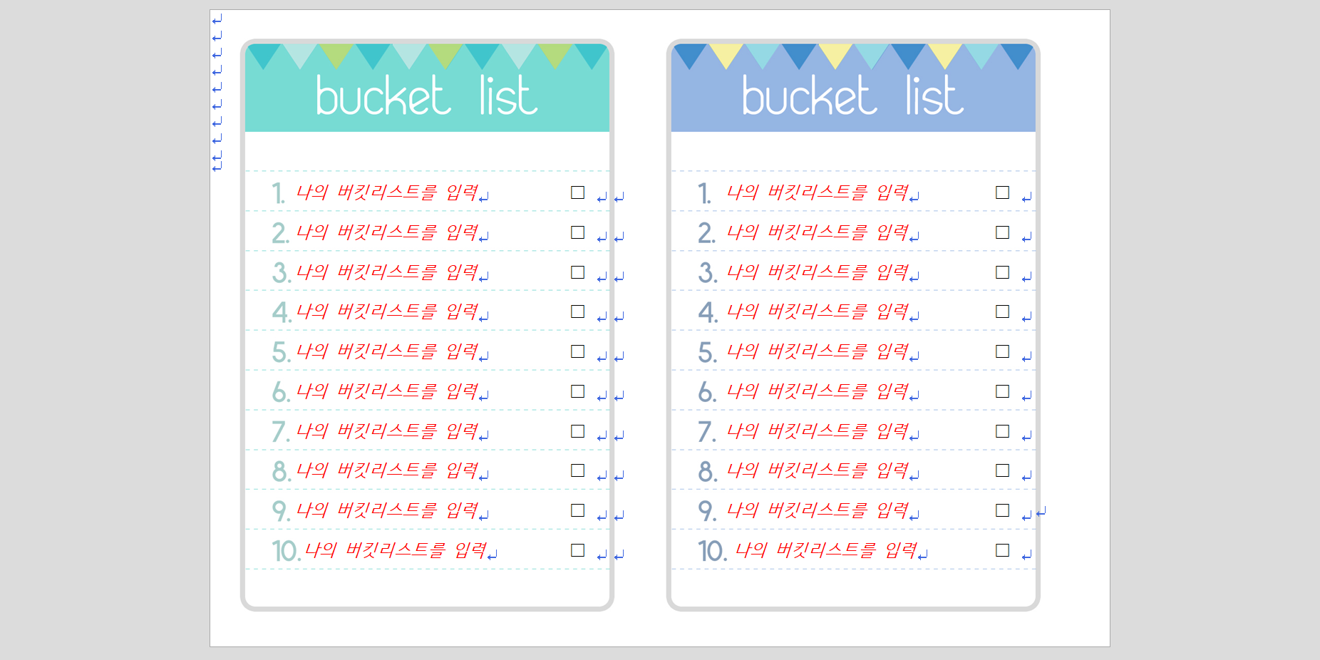 바탕화면에 아래와 같은 bucket_list.hwp 라는 문서가 있을 때