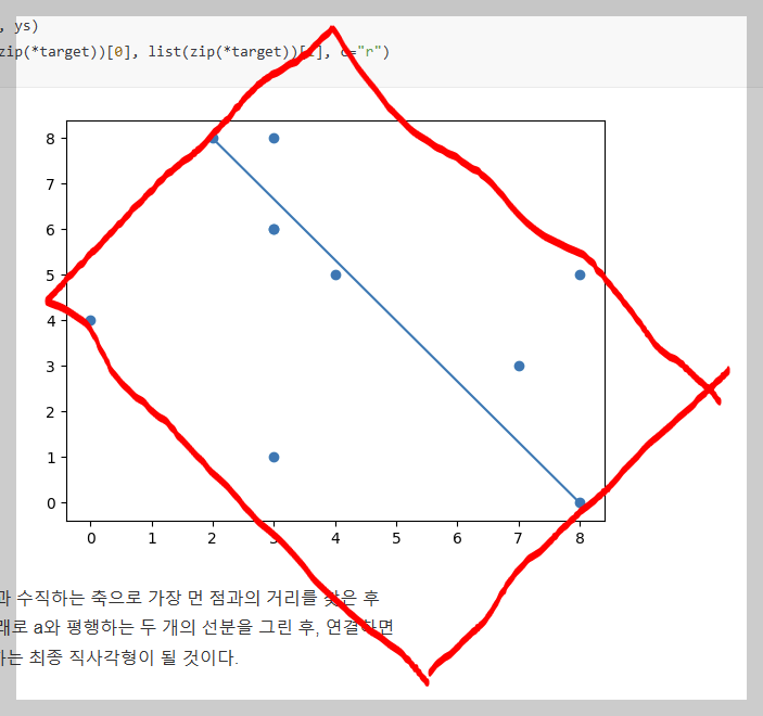 그냥 x_min, x_max, y_min, y_max 네 점을 찾아서 직사각형을 그리면 그만이겠지만,