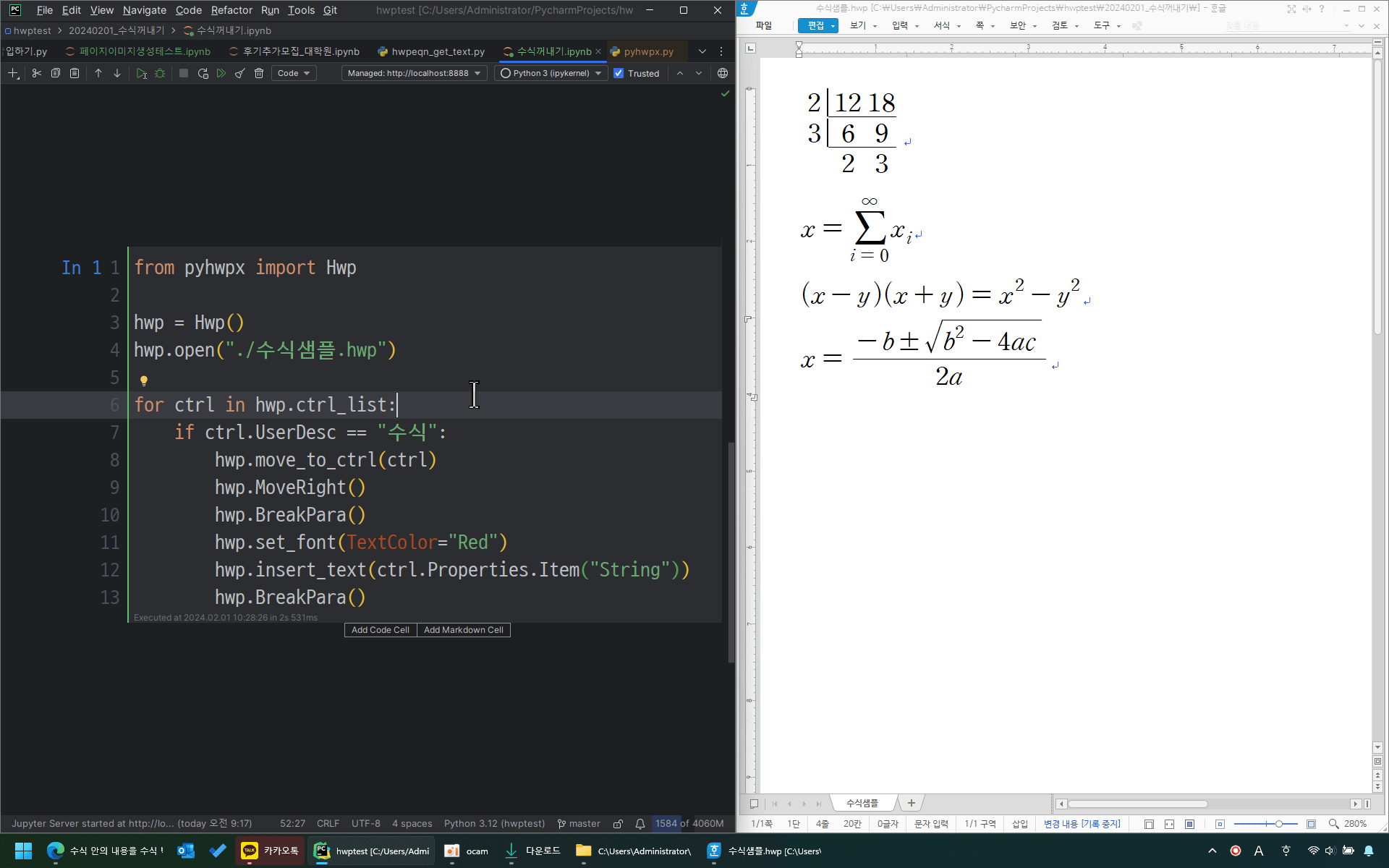 그리고 pyhwpx를 사용하는 방식도 위와 비슷한데,