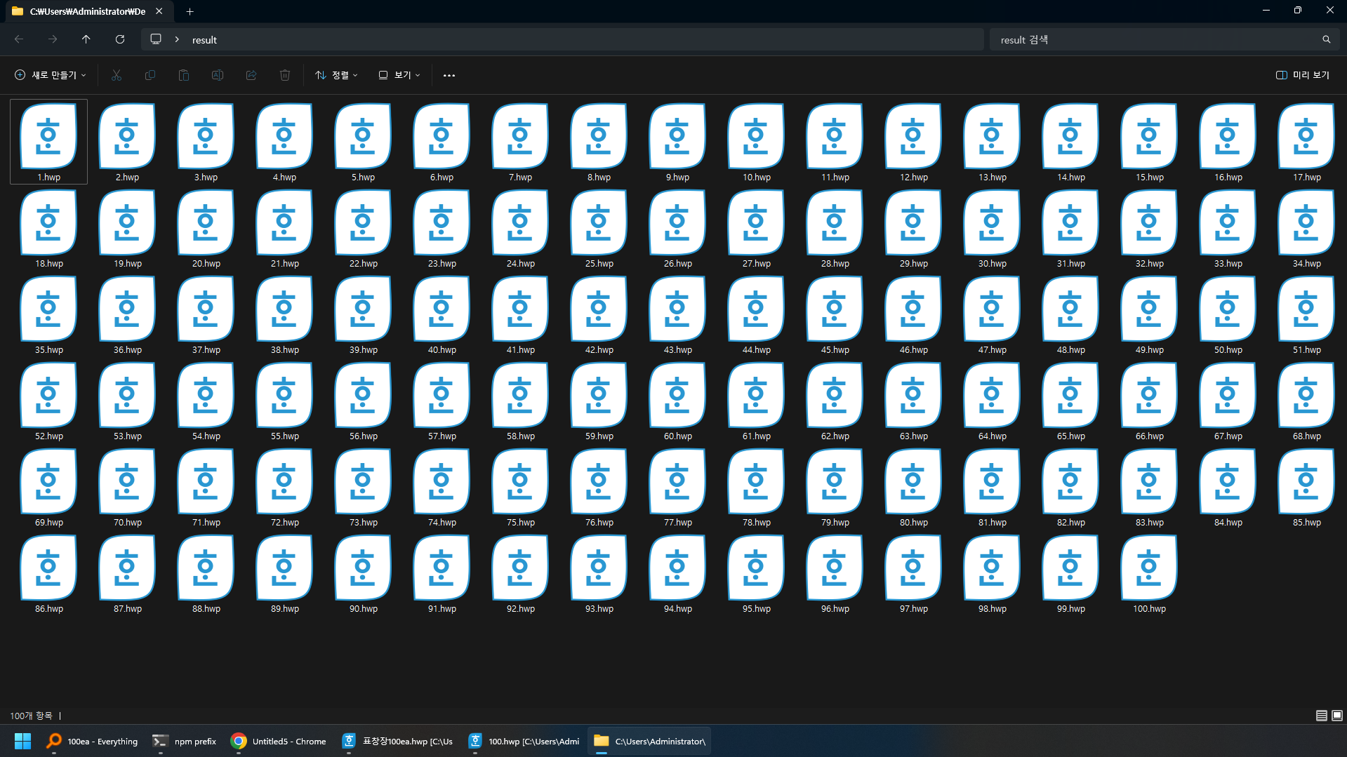 페이지별로 1.hwp, 2.hwp, ..., 100.hwp로 저장하는 예제를 진행해보자.