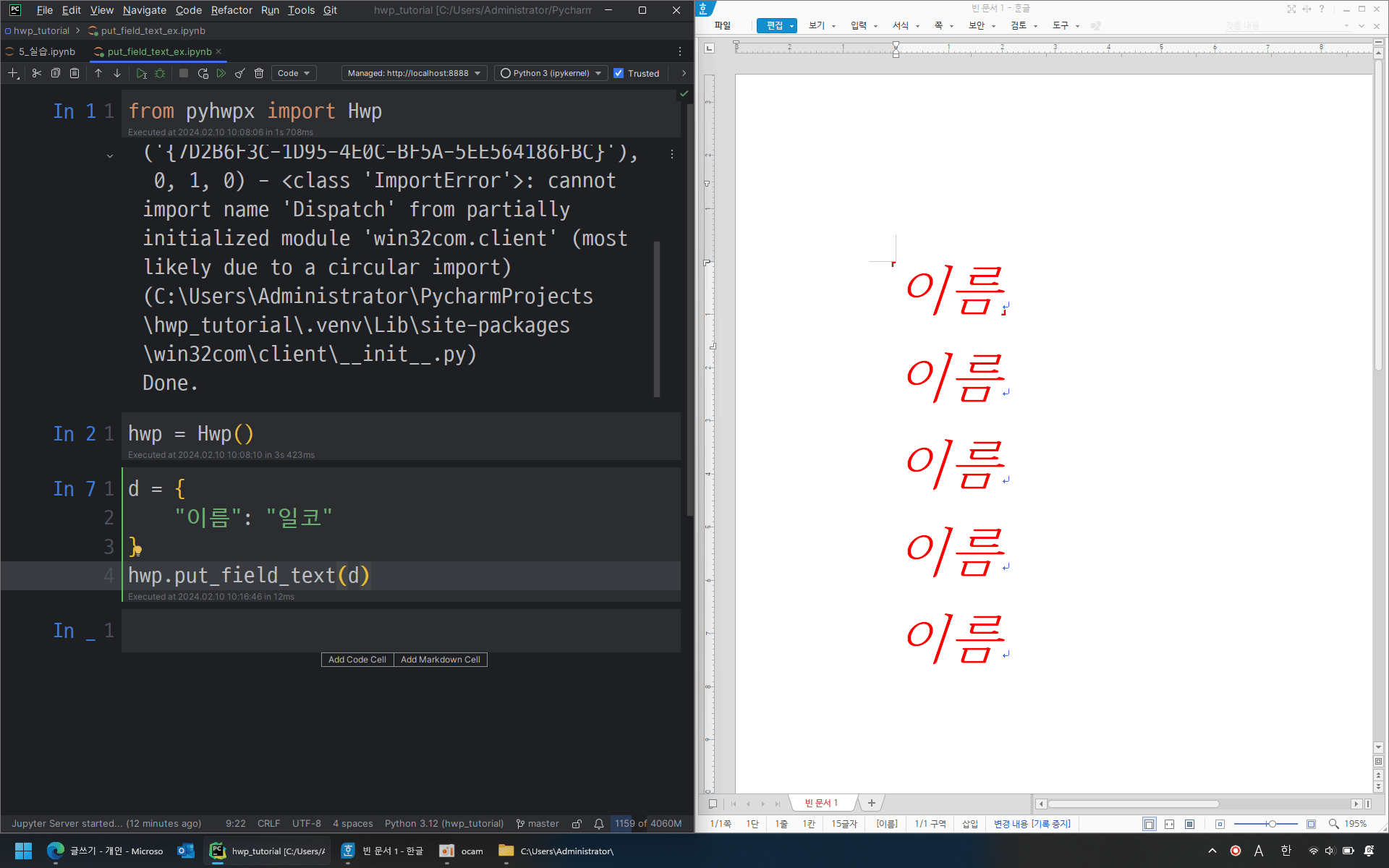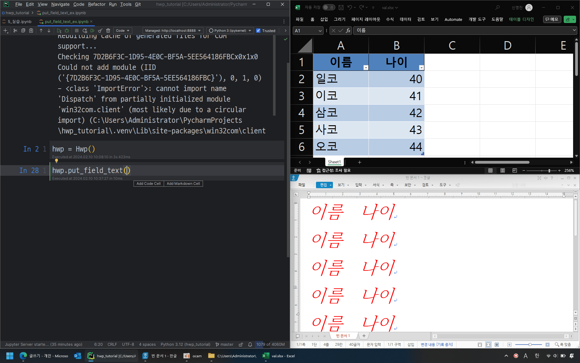 6. hwp.put_field_text(엑셀파일경로) # 오예ㅔㅔㅔㅔ!!!!!