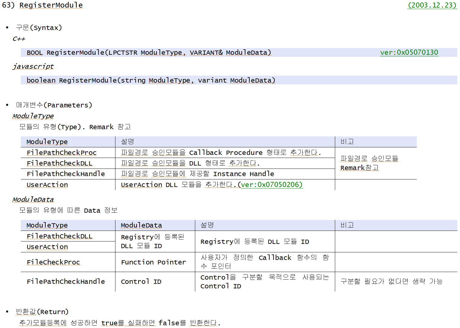 이제 등록이 완료되었습니다. 레지스트리 에디터를 닫고, 보안승인 모듈 사용법을 API매뉴얼에서 확인해봅시다.